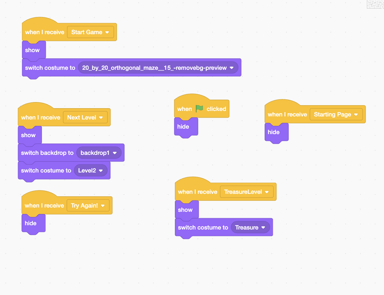 This project was created as part of a class assignment focused on introducing fundamental programming concepts through Scratch, a block-based visual coding platform. I developed a multi-level maze game that combines interactive gameplay with creative storytelling, original design elements, and sound integration.